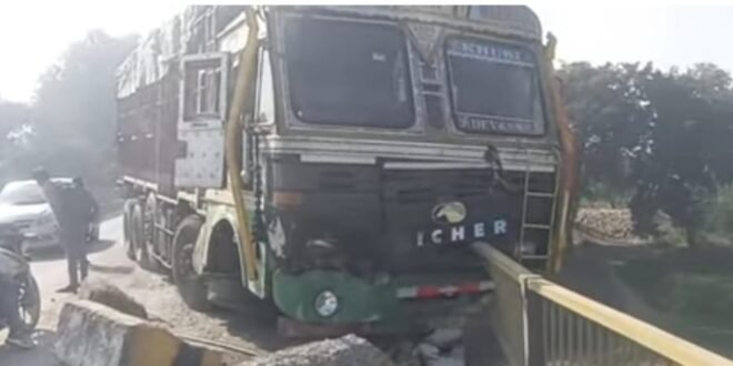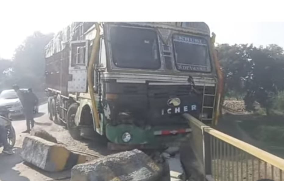 रामगंगा पुल पर बड़ी घटना होने से टली ट्रक रेलिंग तोड़कर नदी में लटका*