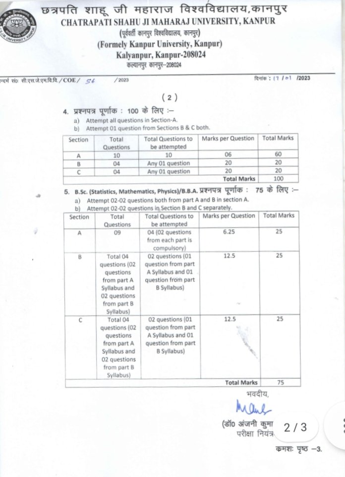 छत्रपति शाहूजी महाराज विश्वविद्यालय कानपुर सीएसजेएमयू स्नातक की परीक्षाएं इस बार 2 घंटे में कराने की तैयारियां सीएसजेएमयू स्नातक परीक्षाएं इस बार 3 घंटे नहीं बल्कि 2 घंटे की होंगी/