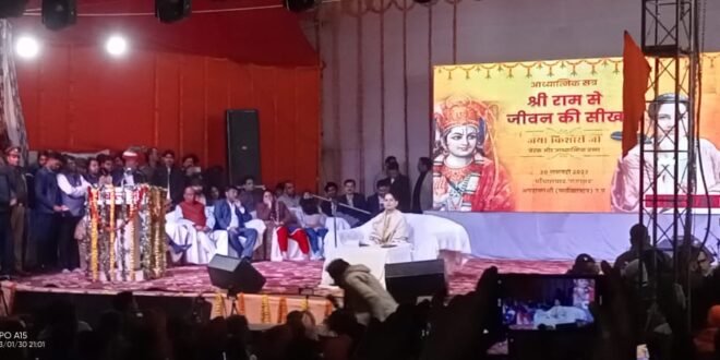 जया किशोरी जी के भजन कीर्तन सुनकर पूरा पांडाल झूम उठा संस्कृतिक पंडाल में आए हुए साधु संत कल्प वासियों ने भजन कीर्तन का आनंद लिया
