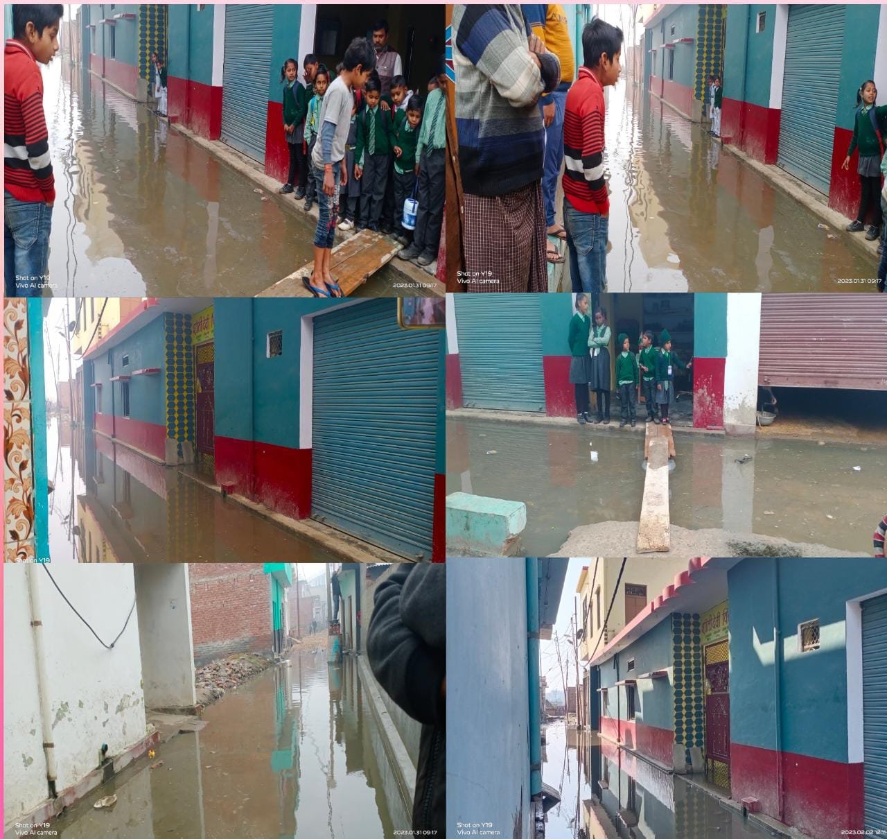 नगर पंचायत की लापरबाही से गली में भरा पानी विद्यालय जाने वाले बच्चों को हो रही काफी परेशानी*
