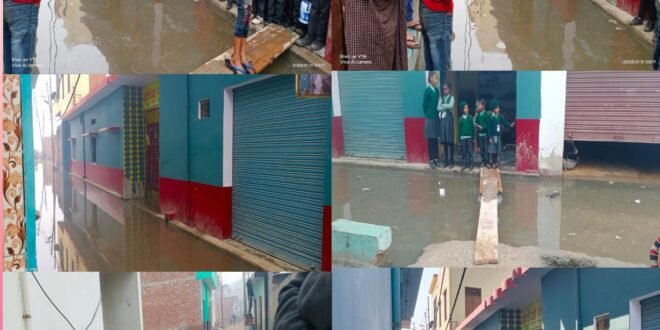 नगर पंचायत की लापरबाही से गली में भरा पानी विद्यालय जाने वाले बच्चों को हो रही काफी परेशानी*