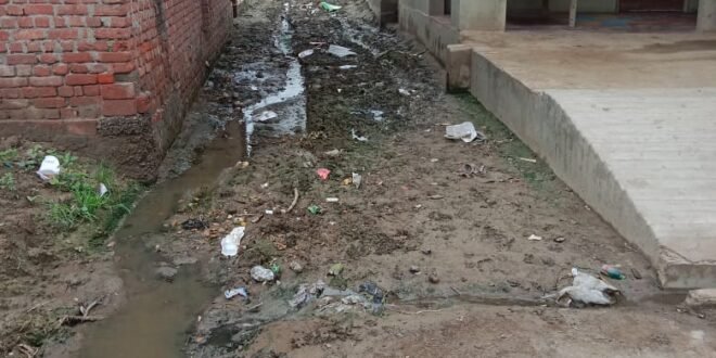 बजबजा रही ग्रामीण पानी में घुस कर व कीचड़ में घुसकर निकलने को मजबूर हैं ग्रामीणों की सुनने वाला कोई नहीं है उच्च अधिकारी चुप्पी साधे बैठे हुए हैं उच्च अधिकारियों की मिलीभगत से ग्रामीण पानी में घुसकर निकलने को मजबूर है