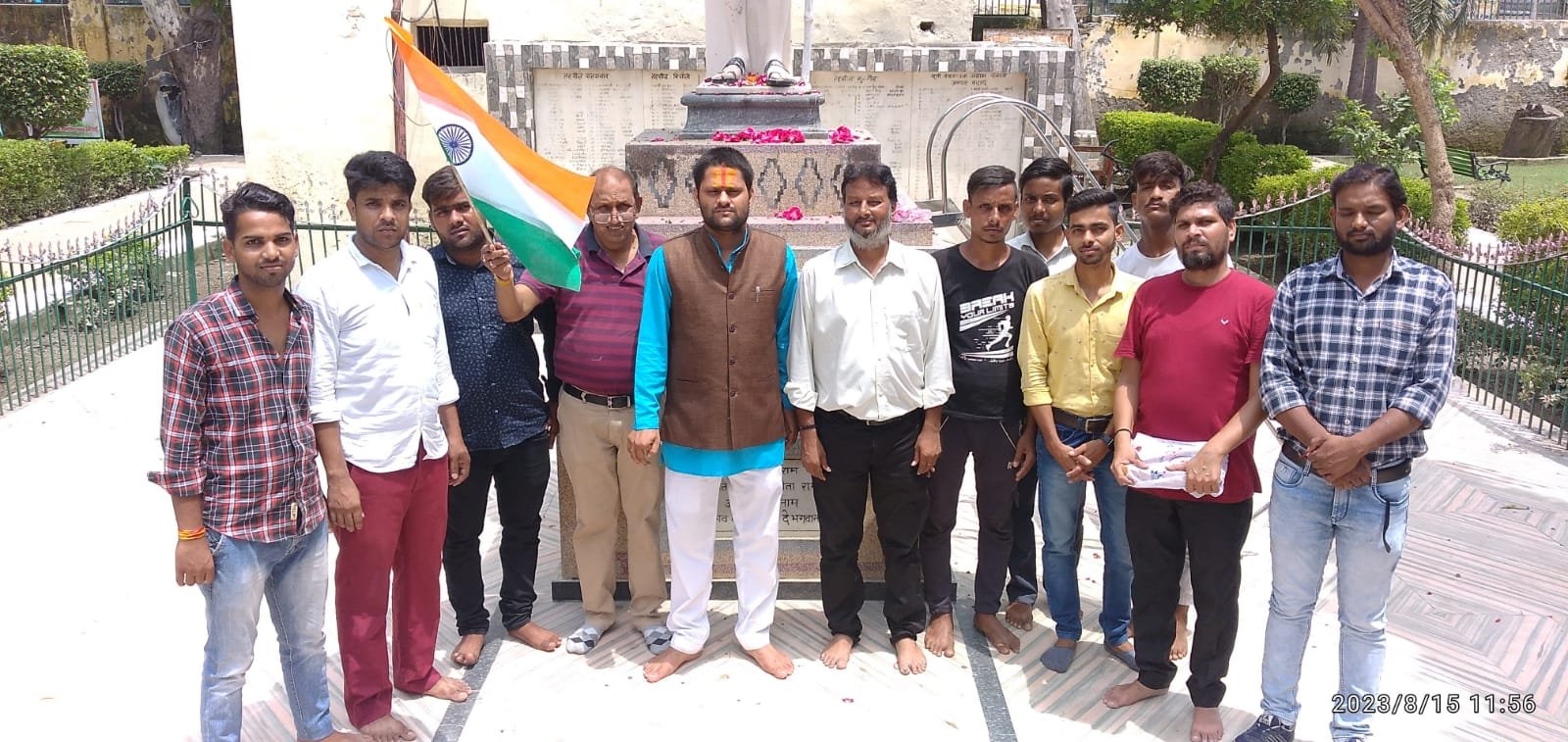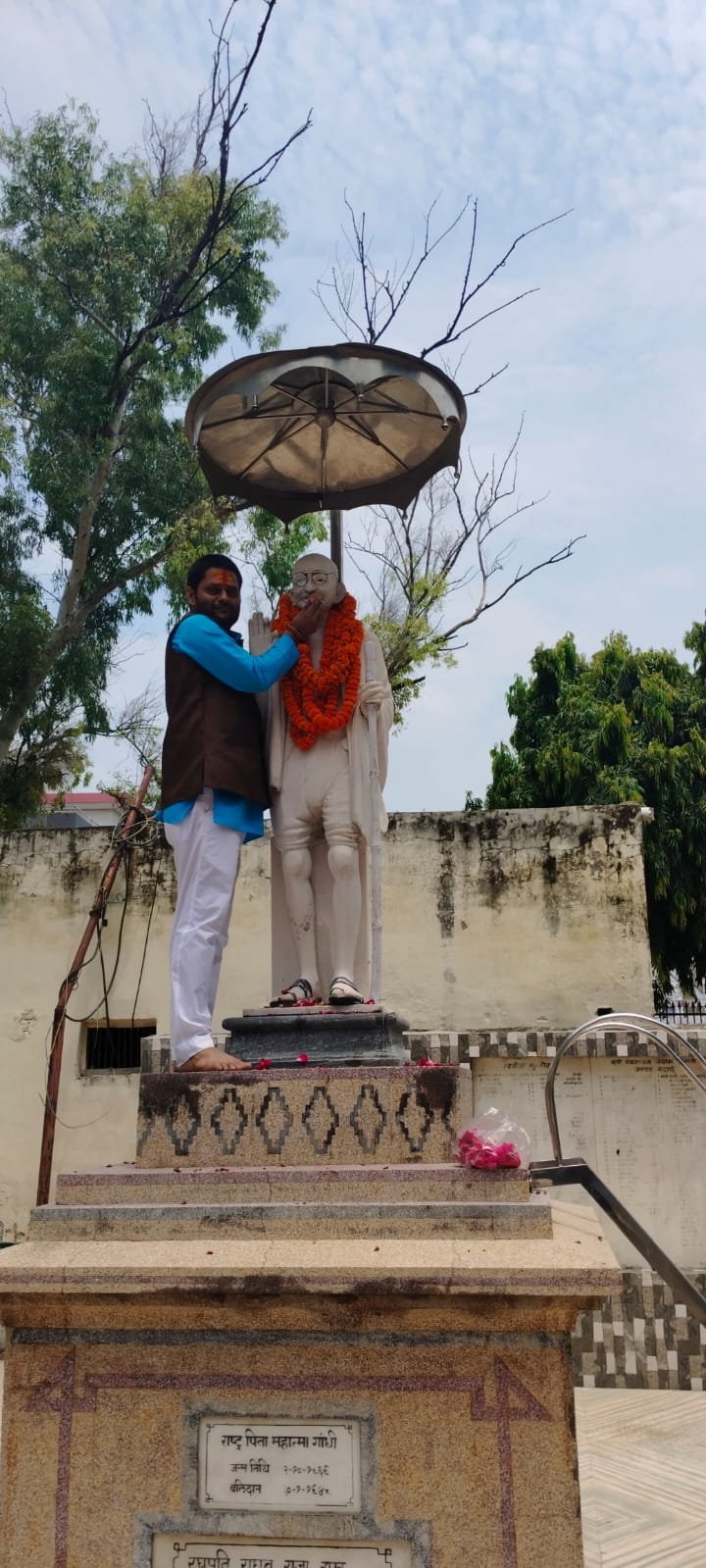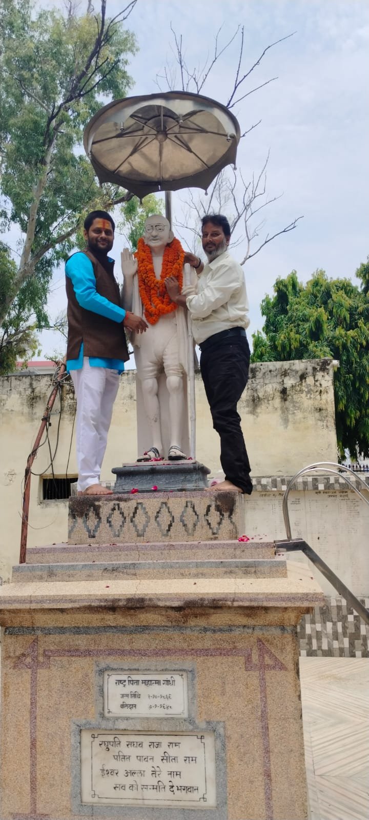 भाजपा नेता पं अमन मयंक शर्मा ने मूक बधिर जन सशक्तिकरण संस्थान के जिलाध्यक्ष अमित शर्मा के साथ में गांधी ग्राउंड में महात्मा गांधी की प्रतिमा पर माल्यार्पण कर कर ध्वजारोहण किया।मुख्य अथिति भाजपा नेता ,