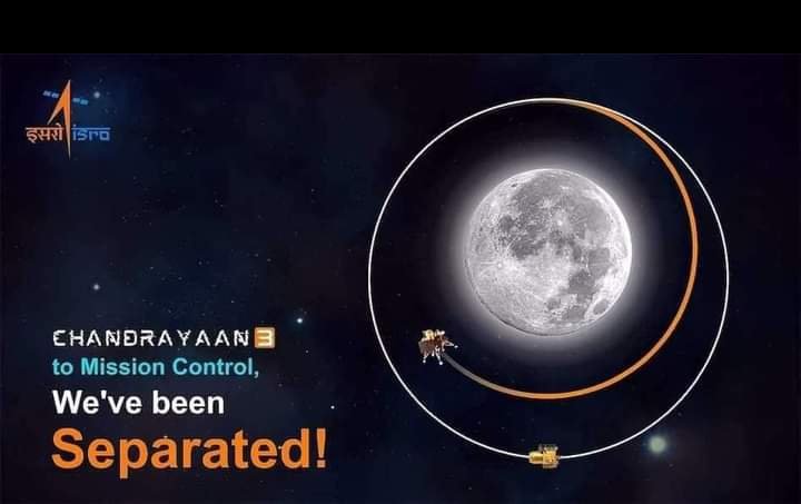 भारत का चंद्रयान 3, 14 जुलाई को लांच किया गया था chandrayaan-3 चंद्रमा के आर्विटलों की कक्षा में पहुंचकर चारों तरफ चक्कर लगाते हुए 17 अगस्त को प्रोपल्शन मॉड्यूल से सफलता पूर्वक अलग हुआ