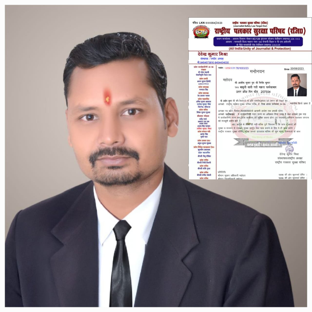 राष्ट्रीय पत्रकार सुरक्षा परिषद(रजि.)ने आलोक शुक्ला को फर्रुखाबाद जिलाध्यक्ष किया मनोनीत*