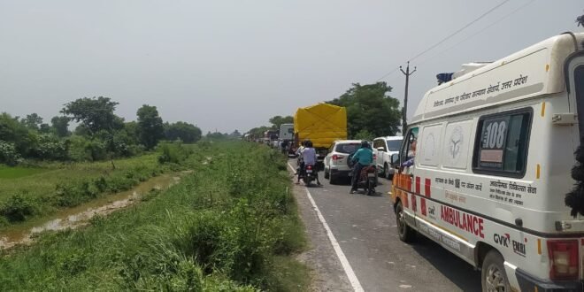 जनपद फर्रुखाबाद के बरेली इटावा हाईवे मार्ग पर लगभग तीन किलोमीटर तक लंबा जाम लग गया जिसके चलते यात्री भीषण धूप से तड़पते रहे। 3 किलोमीटर तक लंबा जाम लगने से यात्री बेहाल हो गए।पुलिस प्रशासन की लापरवाही के चलते लगातार जाम की स्थिति बनी रहती है । जाम में कई गाड़ियां ,एम्बुलेंस ,विद्यार्थी फंसे रहे ।