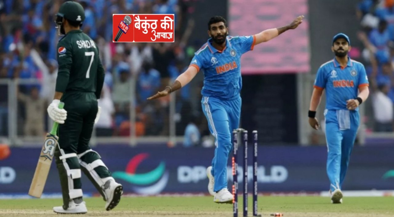 IND vs PAK भारत और पाकिस्तान के बीच अहमदाबाद के नरेंद्र मोदी स्टेडियम में भारत के कप्तान रोहित शर्मा ने टॉस जीतकर गेंदबाजी का फैसला किया पाकिस्तान की टीम 42.5 ओवर में 191 रन पर ऑल आउट हो गई पाकिस्तान की तरफ से बनाए गए सर्वाधिक रन बाबर आजम 58 रन 50 गेंद मोहम्मद रिजवान 49 रन 69 गेंद इमाम उल हक 36 रन 38 गेंद भारत की तरफ से आए बल्लेबाज कप्तान रोहित शर्मा ने 63 गेंद में चौके छक्के लगाकर 86 रनों की धुआं धार पारी खेली श्रेयस अय्यर ने नाबाद 53 रन केएल राहुल ने 19 रन , शुभ मन ने 16 रन, विराट कोहली ने 16 रन बनाए दो विकेट लेने वाले बुमराह प्लेयर ऑफ द मैच चुने गए भारत ने वर्ल्ड कप में आठवीं बार पाकिस्तान को हराया