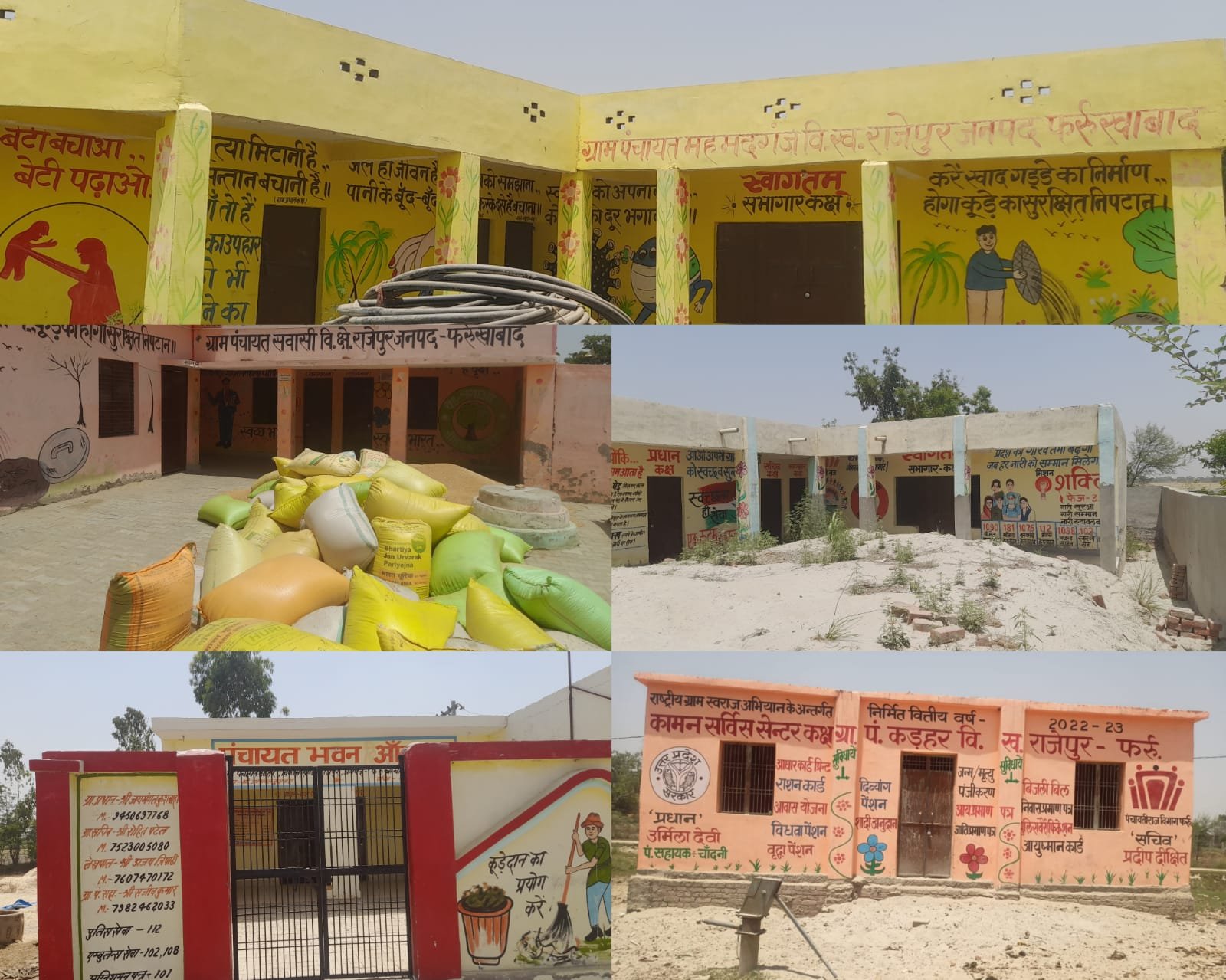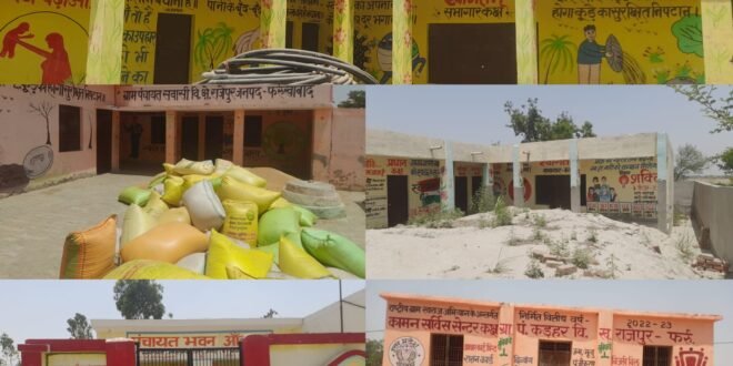 अमृतपुर फर्रुखाबाद 1 मई। उत्तर प्रदेश सरकार द्वारा ग्रामीण क्षेत्रों में विकास की गंगा बहाने के लिए तरह-तरह के उपाय किए जा रहे हैं। स्कूलों का निर्माण कराया गया सड़क बनवाई गई बिजली की व्यवस्था चुस्त की गई और सभी ग्राम पंचायतो में पानी की टंकियां बनवाई गई जो की सफेद हाथी साबित हो रही है। लेकिन इन्हीं ग्राम पंचायतो में सचिवों को ठहरने के लिए बेहतरीन पंचायत भवन लाखों रुपए की लागत से बनवाए गए जो कि आज धूल फ़ाक रहे हैं। ना तो इन पंचायत भवनों में कोई पंचायत सचिव ठहरता है और ना ही इनके ताले खुलते हैं और ना ही यहां पर किसी प्रकार की सुविधा ग्रामीणों को दी जाती है। विकासखंड राजेपुर के अंतर्गत आने वाली ग्राम पंचायतें अब पिछड़ती जा रही है और उनकी देखभाल करने वाला कोई नहीं है। ग्राम विकास अधिकारी ना तो समय से पहुंचते हैं और ना ही इन ग्राम पंचायत के बारे में कुछ नया करने का विचार ही करते हैं। राजेपुर विकासखंड में प्रत्येक हफ्ते ग्राम पंचायत अधिकारियों की मीटिंग बुलाई जाती है। और कागजी करनामें पूरे किए जाते हैं। ग्राम पंचायत सवासी के भवन की स्थिति इतनी दयनीय है कि यहां पंचायत भवन को गल्ला मंडी बना दिया गया है। ग्रामीणों का कई एक हजारों कुंतल के रूप में ग्राम पंचायत सवासी की पंचायत भवन के अंदर पड़ा हुआ है। पंचायत सहायक भी नहीं आ रहा है।और इस पंचायत भवन पर इन लोगों ने पूर्ण रूप से कब्जा कर रखा है। यहां के प्रधान प्रदीप कुशवाहा का कहना है कि यह गेहूं ग्रामीणों का पड़ा है। कुछ समय के बाद वह इसे उठा लेंगे। यही हाल ग्राम पंचायत तेरा अकबरपुर का है। जिसके अंदर और बाहर बालू के ढेर लगे हुए हैं। कार्य अधूरा है। इसके बारे में ग्राम प्रधान और सचिव लगातार सुस्ती दिखा रहे हैं। लापरवाही के चलते निर्माण कार्य अधर में लटका हुआ है। ऐसी स्थिति ग्राम पंचायत आंतर के पंचायत भवन की भी है। यहां पर हमेशा ताला लटका रहता है। अगर यहां के लर्निंग पॉइंट में कोई ग्रामीण अपना कार्य कराना चाहे तो उसे वापस लौटना पड़ता है। यहां के पंचायत सहायक इस समय अपने खेतों में कार्य कर रहे हैं। उनका कहना है कि जब वह फुर्सत में होंगे तभी ताला खोल पाएंगे। विकासखंड के पंचायत भवनों की स्थिति लगातार बिगड़ती जा रही है। ग्राम पंचायत कहडर के पंचायत भवन में भी ताला लटक कर अपनी शोभा बढ़ा रहा है। ग्राम पंचायत महमदगंज भी इन सब बातों से दूर नहीं है।