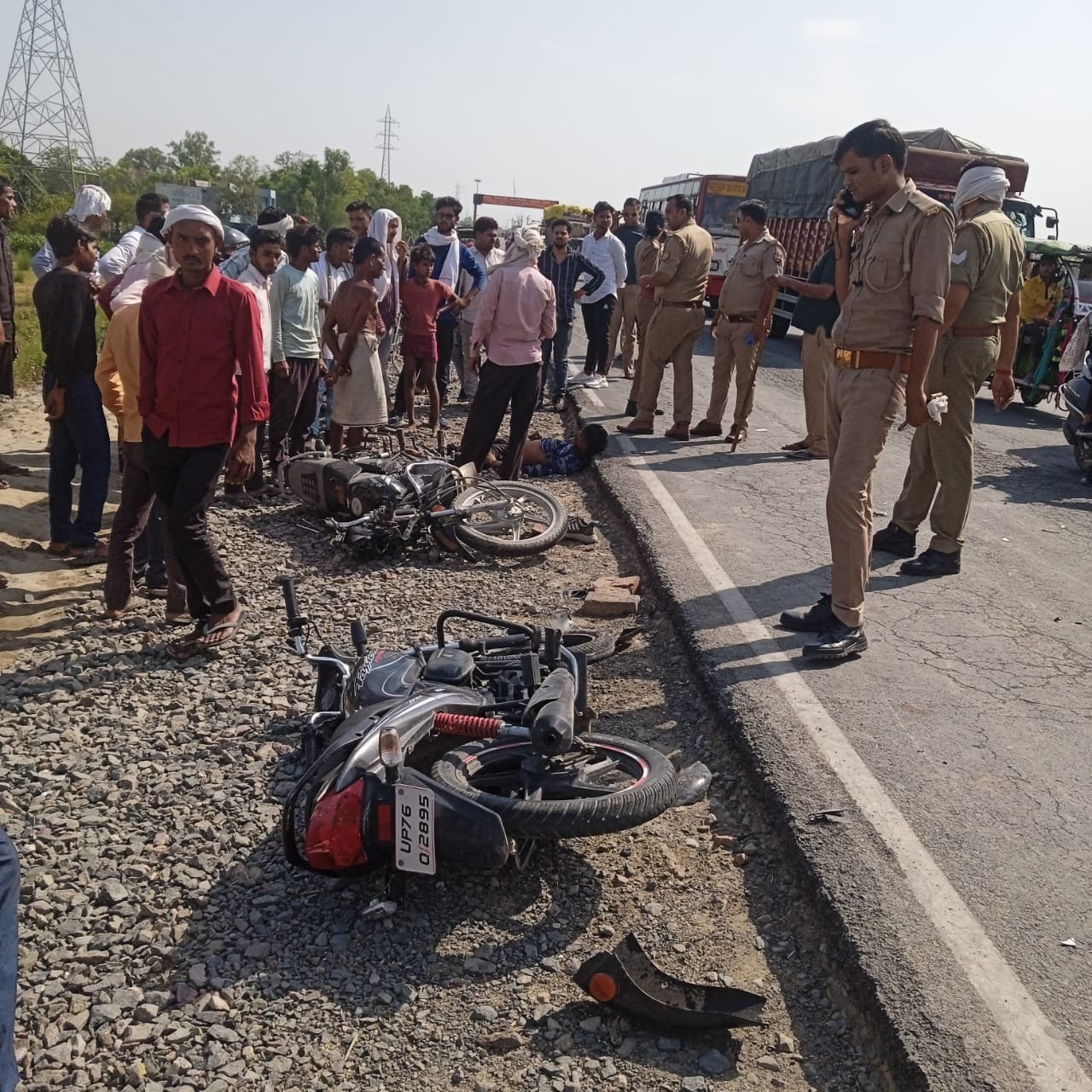 राजेपुर थाना क्षेत्र ग्राम पंचायत चाचूपुर जटपुरा पांचालघाट पुल के अंतर्गत तेज रफ्तार बाइक नंबर UP 76 AF 66 32 दूसरी ओर से आ रही बाइक नंबर UP76 Q 2895 आपस में जोरदार टक्कर हो गई जिससे दोनों बाइक चालकों की मौके पर मौत हो गई एक गंभीर रूप से घायल है जिसका उपचार लोहिया अस्पताल में चल रहा है जबकि साथी घायल हो गया