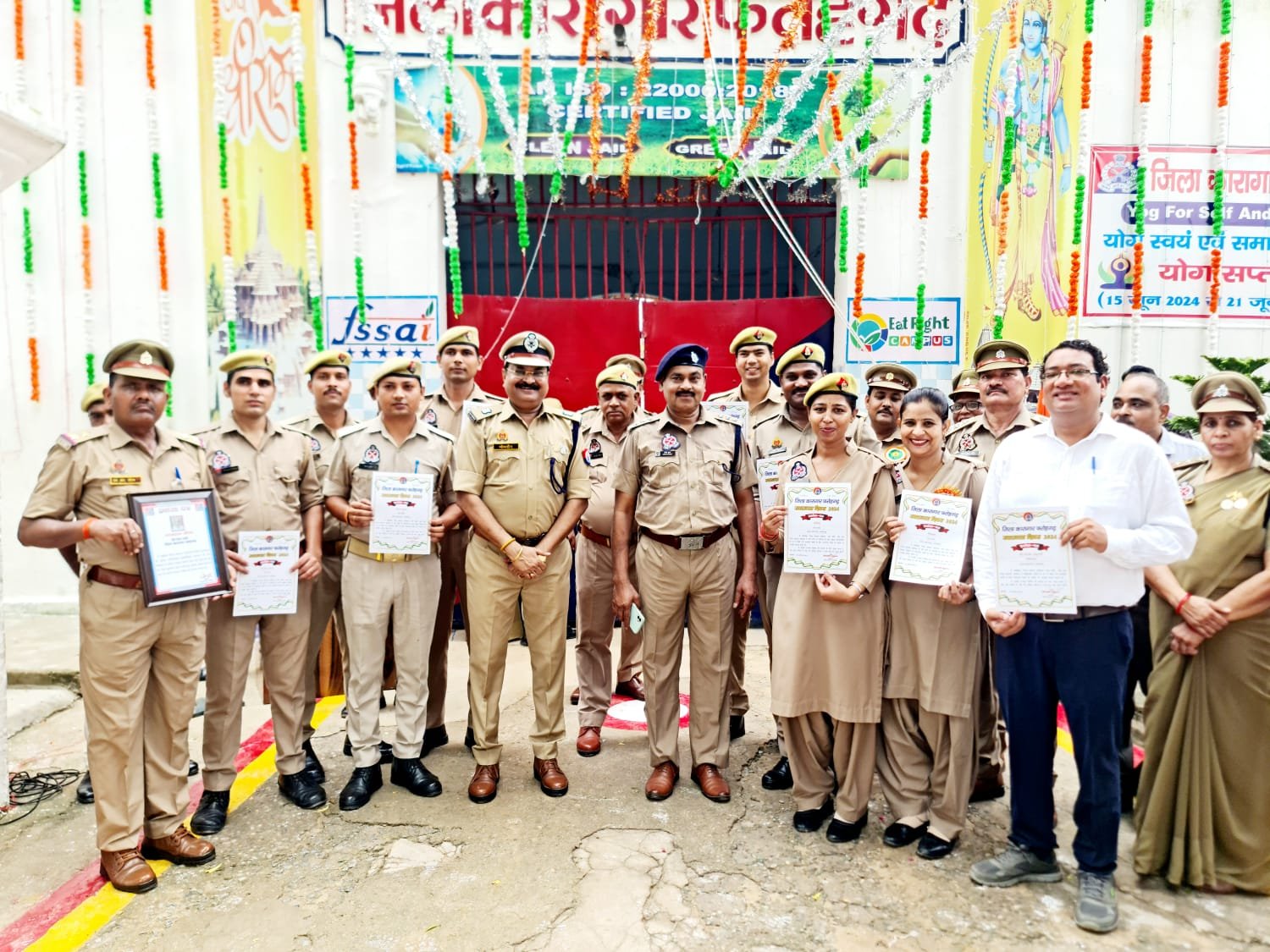 उत्कृष्ट कार्य करने वाले अधिकारियों एवं कर्मचारियों डा. विजय अनुरागी, फार्मासिस्ट यादवेंद्र मोहन, हेड जेल वार्डर लज्जाराम , जेल बार्डर संजय सिंह, सोनू, चिंटू कुमार, नीरज कुमार, पंकज कुमार, विकास कुमार, गौरव तोमर, कारागार में जिलाधिकारी श्री वी.के. सिंह आईएएस, श्री महेंद्र सिंह प्रशिक्षु आईएएस एवं श्री नीतेश राज प्रशिक्षु एसडीएम ने जेल के कार्यक्रमों में भाग लिया। बंदियों को फल वितरण किया इत्यादि को प्रशंसा पत्र देकर सम्मानित किया गया । कारागार विभाग की सेवानिवृत चतुर्थ र्श्रेणी श्री मती गिरिजा देवी को शाल भेंटकर सम्मानित किया गया ।