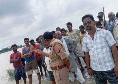 अमृतपुर थाना अध्यक्ष ने गंभीर बाढ़ पीड़ित क्षेत्र में पहुंचकर लिया जाएजा