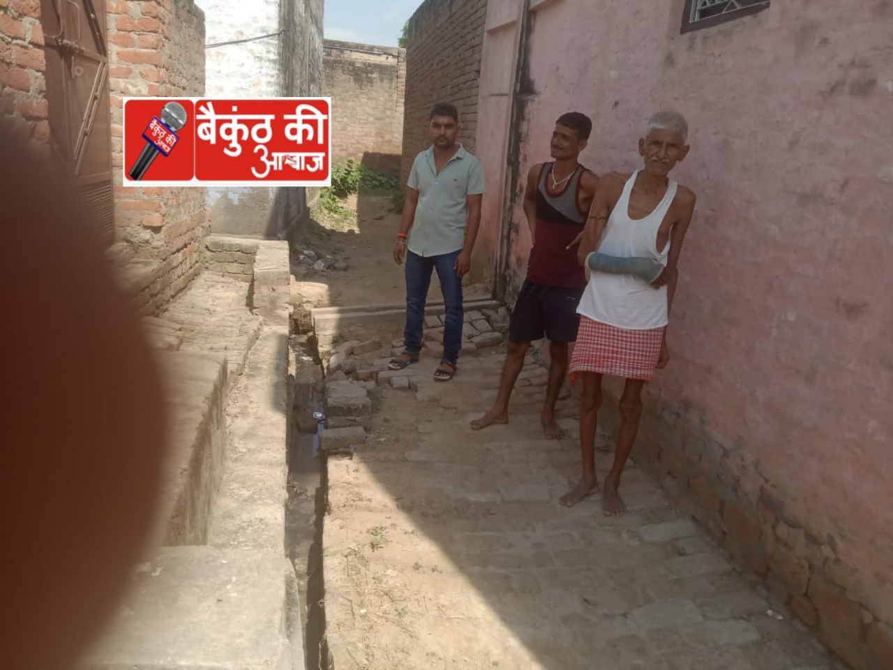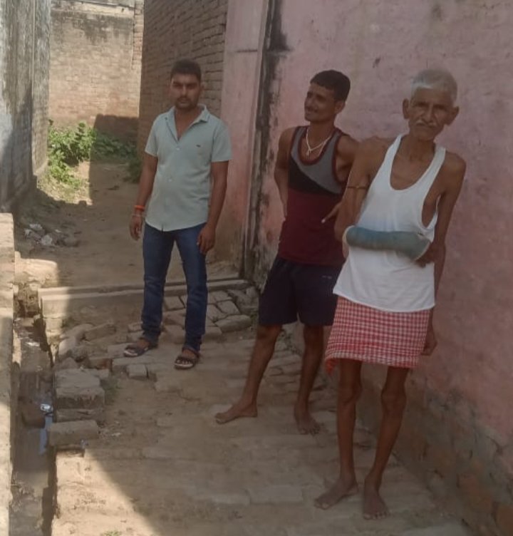 अपने गांव की समस्या मीडिया के सामने शेयर करता बुजुर्ग