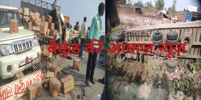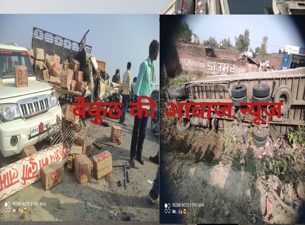 कंटेनर जमापुर की तरफ से पांचाल घाट जा रहा था वहीं पांचाल घाट की तरफ से पिकअप जमापुर की तरफ आ रही थी