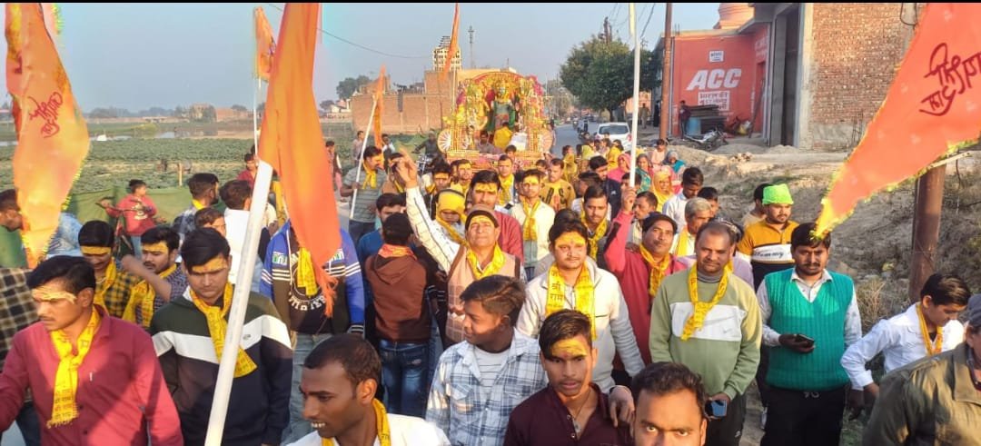 नगर पंचायत कंपिल में प्रभू श्रीराम की शोभायात्रा निकाली गई। पुष्पों की वर्षा से माहौल भक्तिमय हो गया। शोभायात्रा में जय श्री राम , भारत माता की जय के उद्घोष व डीजे के भजनों ने युवाओं में जोश भर दिया। अयोध्या धाम में प्रभू श्रीराम की प्राण प्रतिष्ठा के एक वर्ष पूर्ण होने के उपलक्ष्य में नगर के रामलीला मैदान से श्रीराम की शोभायात्रा का आरंभ हुआ। शोभायात्रा कंपिल बाईपास से होती हुई सिवारा मार्ग से पट्टी मदारी पहुँची। महिलाओं व पुरूषों ने प्रभू श्रीराम के स्वरूप की आरती कर विश्व कल्याण की प्रार्थना कर आशीर्वाद लिया। नगर मुख्य मार्ग से शोभायात्रा चौराहे पर पहुँची। वहाँ भक्तों के द्वारा राहगीरों को प्रसाद वितरण किया गया। माथे पर चंदन का लेप गले में जय श्रीराम लिखें अंगवस्त्र और डीजे पर बजते भजनों ने युवाओं को थिरकने पर मजबूर कर दिया। जय श्री राम , मोदी – योगी जिंदाबाद , भारत माता की जय के नारों ने माहौल को भक्तिमय बना दिया। जिसके बाद शोभायात्रा गंगा मार्ग से होती हुई रामेश्वरनाथ शिव मंदिर पहुँची। लोगों ने शोभायात्रा का जगह – जगह पुष्पवर्षा कर स्वागत किया। भाजपा नेता निशांत गुप्ता ने बताया कि अयोध्या में श्रीरामलला की प्राण-प्रतिष्ठा की प्रथम वर्षगांठ है, यह दिन महान संतों व बलिदानियों की त्याग-तपस्या और संघर्ष के बाद आया है।यह मंदिर हमारी संस्कृति व अध्यात्म की महान धरोहर है। इस दौरान विवेक शुक्ला, बबलू शुक्ला, ठाकुर राजभूषण सिंह , विनय शुक्ला, भूरे श्रीवास्तव, सत्यम वर्मा, रजनेश वर्मा, अवनीश शाक्य , भूरे श्रीवास्तव , आलोक राजपूत , सुरेंद्र सैनी, धर्मेंद्र यादव, अंकित, आदि सौकड़ो की संख्या में सनातनी मौजूद रहे।