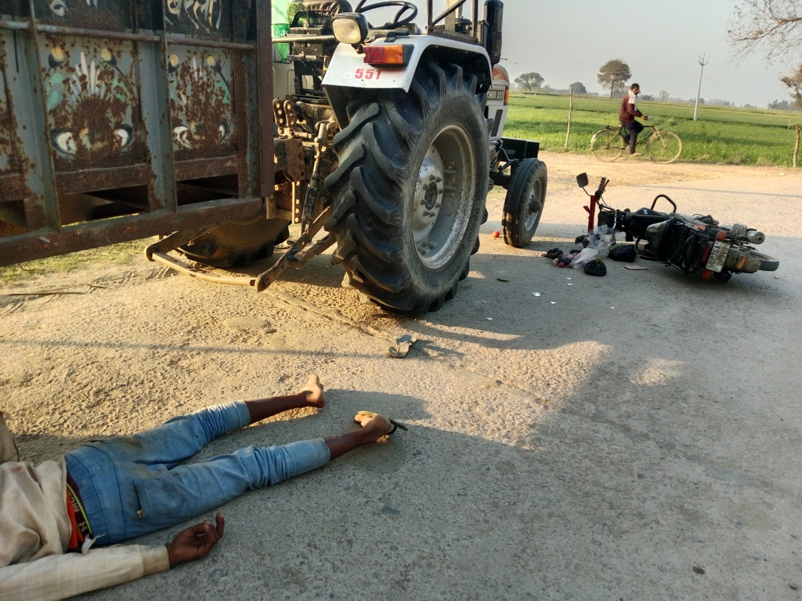ट्रैक्टर ने बाइक सवार को मारी टक्कर जिससे बाइक सवार गंभीर रूप से घायल