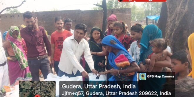 अमृतपुर थाना क्षेत्र के गांव गुडेरा में कुछ दिनों पहले आग ने अपने विकराल रूप से कई घरों को जलाकर राख कर दिया था जिस मे घर गृहस्ती का सारा सामान जलकर राख हो गया था यह देखते हुए अन्नदाता किसान देव कल्याण फाउंडेशन के संस्थापक ब चेयरमैन अमन अवस्थी ब रतनपुर पमारान के पूर्व प्रधान लालू कुशवाहा ने कपड़े ब खाद्य सामग्री वितरित की, और लाइट की व्यवस्था करवाई, रमेश यादव पुत्र जंगी, रामनिवास राजपूत पुत्र लल्लू , अशोक राजपूत पुत्र लल्लू ,बोदिल पुत्र रामऔतार लोगो का घर गृहस्ती का सारा सामान जल गया था तभी अन्नदाता किसान देव कल्याण फाउंडेशन के संस्थापक ब