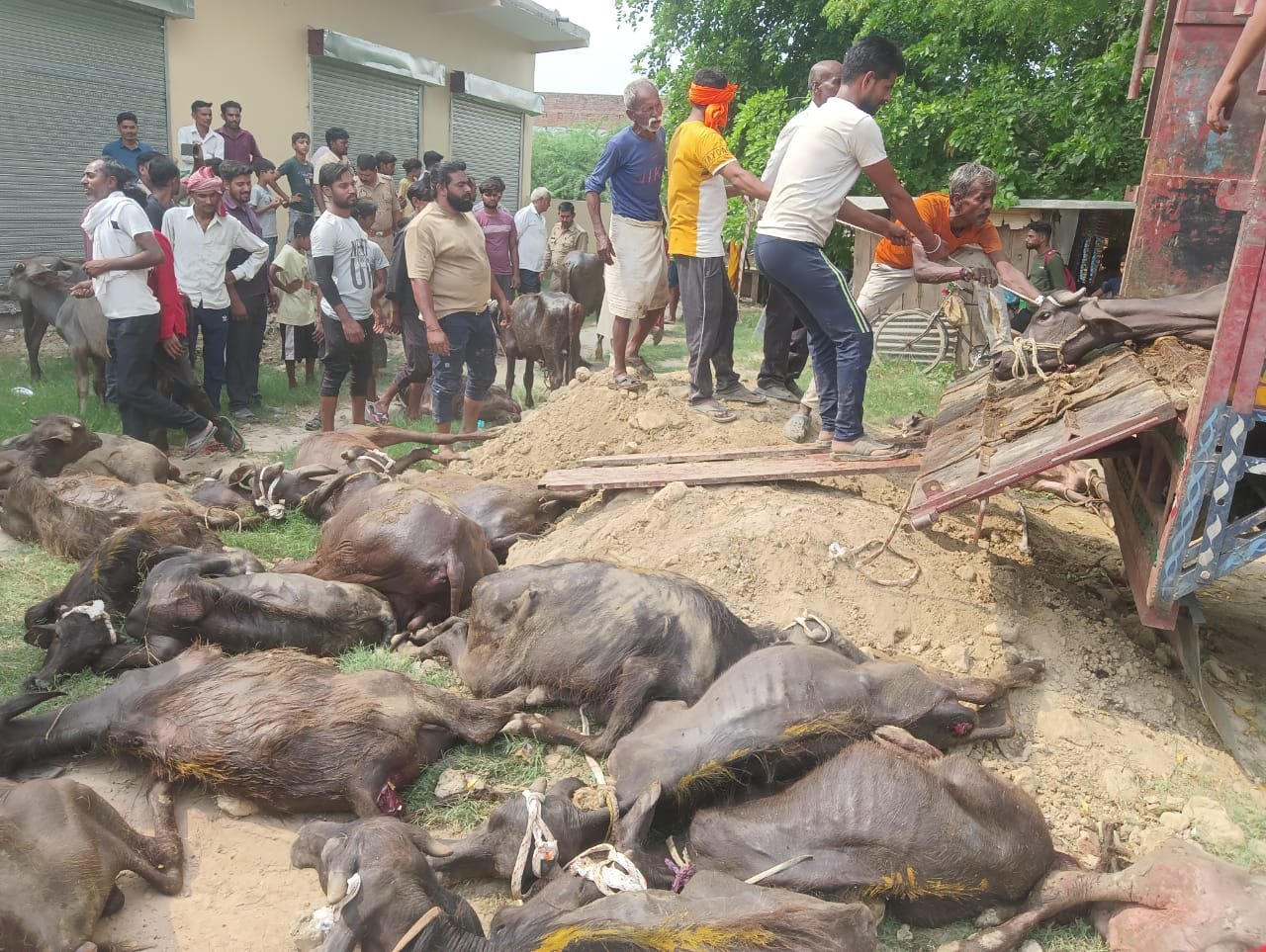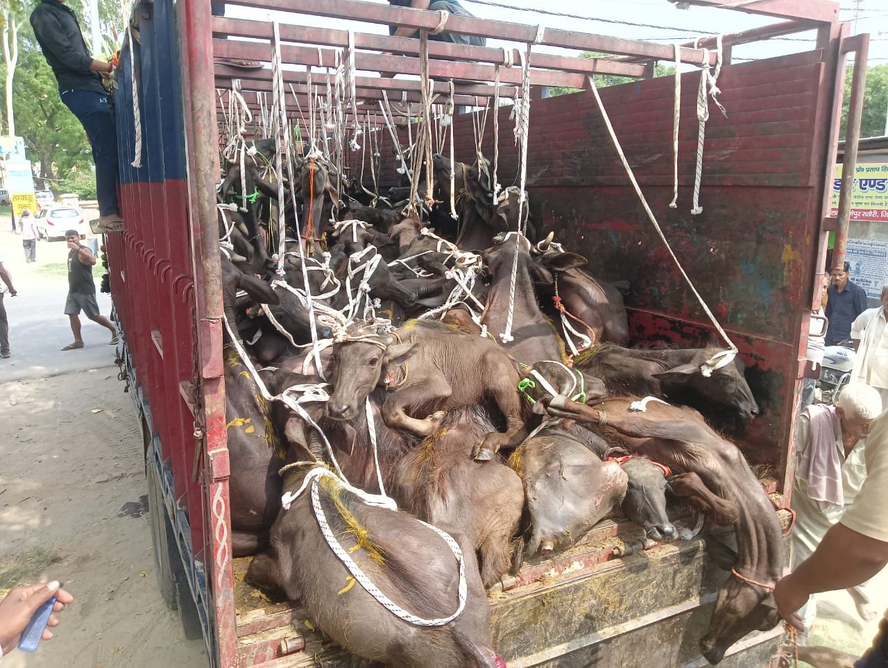 अभय चौहान प्रदेश अध्यक्ष रितेश पाल जिला उपाध्यक्ष दलबीर सिंह प्रदेश उपाध्यक्ष मौके पर हैं एक के ऊपर एक जानवर रस्सी से बुरी तरह से बने हुए थे गोरक्षा दल ने पांचाल घाट पल के निकट डीसीएम को पकड़ लिया और 112 को सूचना दी si मोहित मिश्रा फोर्स के साथ पर पहुंचे पुलिस डीसीएम को राजेपुर ले आई और थाने के सामने प्राथमिक विद्यालय गेट के बाहर ग्रामीण व गोरक्षा दल की सहायता डीसीएम से जानवरों को बाहर निकल गया कई एक जानवर मृत्यु की अवस्था में जमीन पर पड़े हैं प्रदेश अध्यक्ष अभय चौहान ने बताया है कि थाना कादरी में पहुंचकर तहरीर देंगे