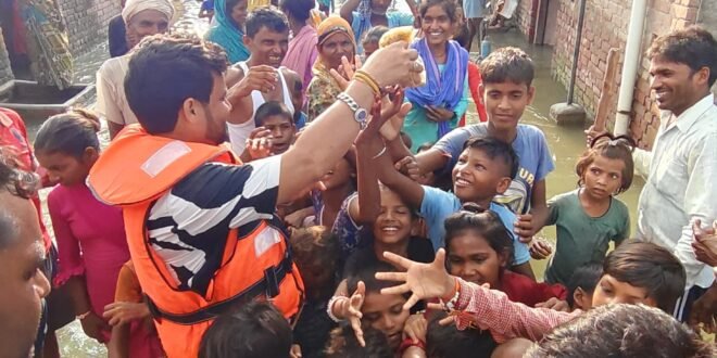 फर्रुखाबाद — गंगा नदी के लगातार बढ़ते जलस्तर ने जनपद के कई गांवों को अपनी चपेट में ले लिया है। खेतों में खड़ी फसलें जलमग्न हो चुकी हैं, कच्चे मकान ढहने लगे हैं और गांव की गलियों में नावें ही सहारा बन गई हैं। इस आपदा के बीच समाजसेवी समरदीप चौहान उर्फ़ टीटू भैया ने बाढ़ पीड़ितों की मदद का मोर्चा संभाल लिया है।