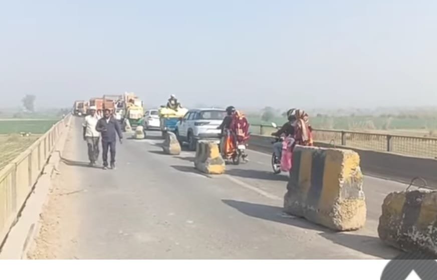 राजेपुर फर्रुखाबाद 1 दिसंबर। क्या वजह है जो की आए दिन रामगंगा पुल पर जाम लगता है और कोई ना कोई बड़ा हादसा हो जाता है। कभी कोई फोर व्हीलर तो कभी कोई ट्रक रेलिंग तोड़ता हुआ नदी में गिर जाता है। लेकिन इस हादसे के मूल कारणों का अभी तक कोई पता नहीं चल पाया है और ना ही पीडब्ल्यूडी विभाग ने इस तरफ कोई ध्यान दिया है। इसी अनदेखी के चलते सोमवार सुबह रामगंगा पुल पर एक बार फिर हादसा हो गया। मक्का लदा ट्रक अचानक अनियंत्रित होकर रेलिंग तोड़ता हुआ पुल के ऊपर लटक गया। जिससे राम गंगा पुल पर लंबा जाम लग गया।थाना राजेपुर क्षेत्र के राम गंगा पुल पर सुबह लगभग 6 बजे ललित पुर से मक्का भरकर बरेली जा रहा ट्रक रामगंगा पुल पर पंहुचते ही दुर्घटना ग्रस्त हो गया।
