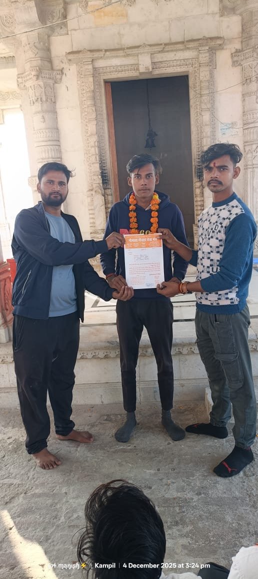 जिसमे से रिफ्लेक्टिव कॉलर बाधना शुरू किया जाएगा जिसको लेकर विशेष चर्चा हुई गौ सेवा टीम कम्पिल ने जल्द गौ शाला बनाने का संकल्प लिया इसी बीच गौ रक्षक सौरभ शर्मा ने कहा कि भारत का प्रत्येक हिंदू अपने घर एक गाय पालने का संकल्प ले ले तो गौ शाला की जरूरत नहीं पड़ेगी गौ रक्षक सौरभ शर्मा जिला अध्यक्ष गौ रक्षा दल फर्रुखाबाद गौ रक्षक युवराज सिंह हिन्दू (जिला उपाध्यक्ष ने कुछ महत्वपूर्ण बातें बताई है