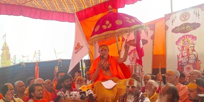 प्रयागराज।माघ मेला में मौनी अमावस्या स्नान पर शोभायात्रा के साथ त्रिवेणी संगम में स्नान करने जा रहे ज्योतिष पीठ के शंकराचार्य स्वामी अविमुक्तेश्वरानंद को रोके जाने का मामला गरमा गया है।खुद के अपमान और अपने शिष्यों के साथ पुलिस की अभद्रता से आहत होकर स्वामी अविमुक्तेश्वरानंद मेला प्रशासन के खिलाफ पिछले 24 घंटे से अन्न-जल त्याग अपने शिविर के बाहर अनशन पर बैठे हैं। अविमुक्तेश्वरानंद अब इस बात पर अड़े हैं कि प्रशासन उनसे इस कृत्य के लिए माफी मांगे और उन्हें ससम्मान संगम में स्नान कराए।