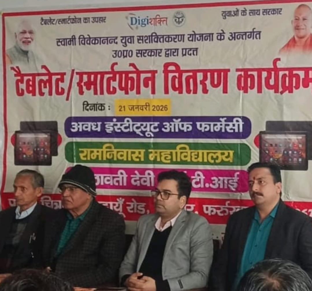 अमृतपुर फर्रुखाबाद 21 जनवरी। राम निवास महाविद्यालय, चित्रकोट, फर्रुखाबाद में टेबलेट व स्मार्ट फोन योजना यू.पी. सरकार के तहत टेबलेट वितरण कार्यक्रम सम्पन्न किया गया। इस कार्यक्रम में मुख्य अतिथि उप जिलाधिकारी अमृतपुर संजय सिंह की गरिमामयी उपस्थिति रही। कार्यक्रम का संचालन प्राचार्य डॉ. प्रवीन कुमार त्रिपाठी द्वारा किया गया। कार्यक्रम में विशिष्ट अतिथि जयंत कुमार दीक्षित पूर्व सी.डी.ओ. रहे।