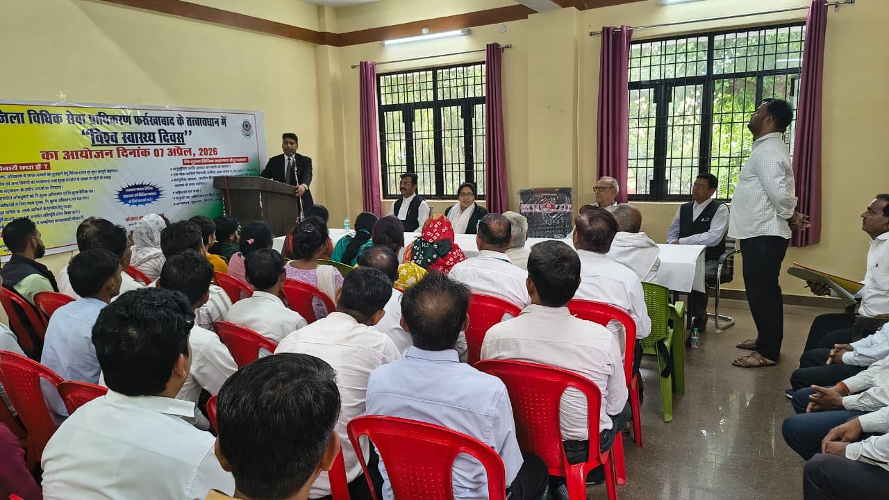 फर्रुखाबाद माननीय जनपद न्यायाधीश नीरज कुमार फर्रुखाबाद के निर्देशानुसार आज दिनांक 7 अप्रैल 2026 को जिला विधिक सेवा प्राधिकरण फर्रुखाबाद के तत्वाधान में विश्व स्वास्थ्य दिवस की गोष्ठी का आयोजन ADR भवन के सभागार कक्ष में संपन्न किया गया इस कार्यक्रम के अवसर पर अध्यक्ष के रूप में संजय कुमार VI अपर जिला जज/नोडल अधिकारी जिला विधिक सेवा प्राधिकरण फर्रुखाबाद ने कहा कि आयोजन का मुख्य उद्देश्य लोगों को उनकी सेहत के प्रति जागरूक करना और उन्हें बेहतर स्वास्थ्य सुविधाओं तक पहुँच के बारे में जानकारी देना है। । इस कार्यक्रमों में शारीरिक, मानसिक और सामाजिक स्वास्थ्य के महत्व पर जोर दिया गया और लोगों को स्वास्थ्य जीवनशैली अपनाने के लिए प्रेरित किया गया।